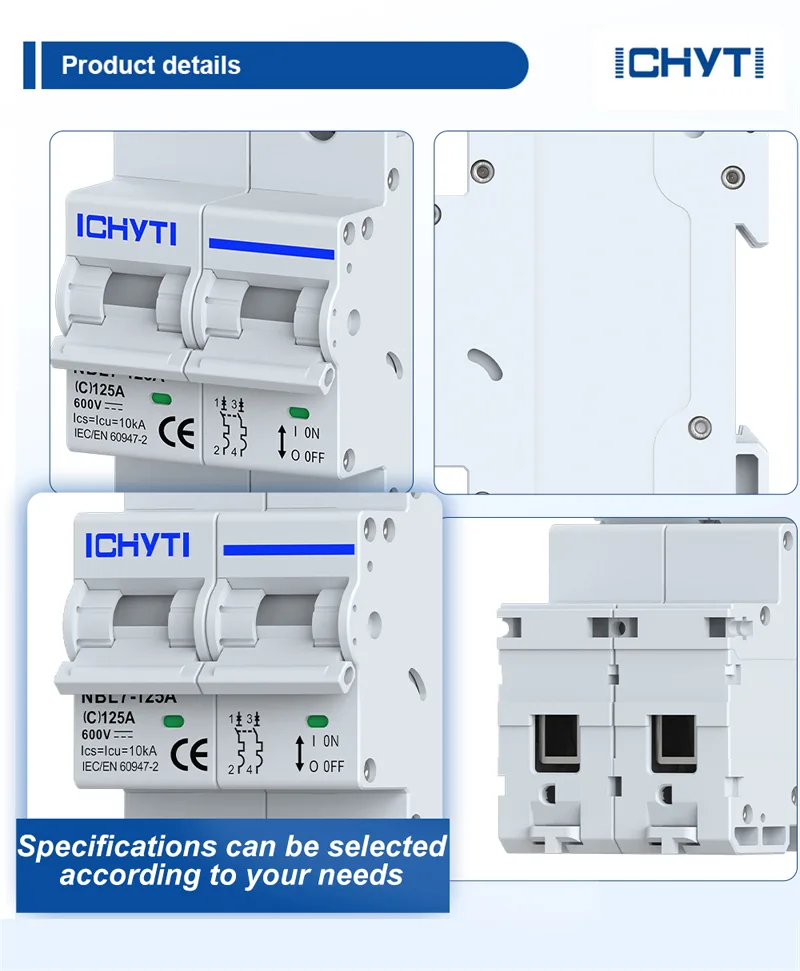 Diskaun Kilang China Ichyti NBL7-125A Non Polarity 125A DC MCB direka tanpa polaritas, menghapuskan keperluan untuk membezakan antara kutub positif dan negatif dalam pendawaian kuasa, dengan berkesan mengurangkan risiko kesalahpahaman. Oleh kerana ciri-ciri pengisian DC yang boleh dibalikkan dan menunaikan dua arah antara bateri dan penyongsang dalam sistem penyimpanan tenaga, pemutus litar DC konvensional hanya dapat memberikan perlindungan unidirectional, sementara Chyt NBL7-125A menyediakan perlindungan bidirectional. Kami juga menawarkan pelbagai kaedah litar pintas untuk memenuhi keperluan atas dan atas, atas ke dalam dan bawah, bawah dan bawah, atau bawah dan ke atas, menjadikan pendawaian pengguna lebih fleksibel dan ekonomik.